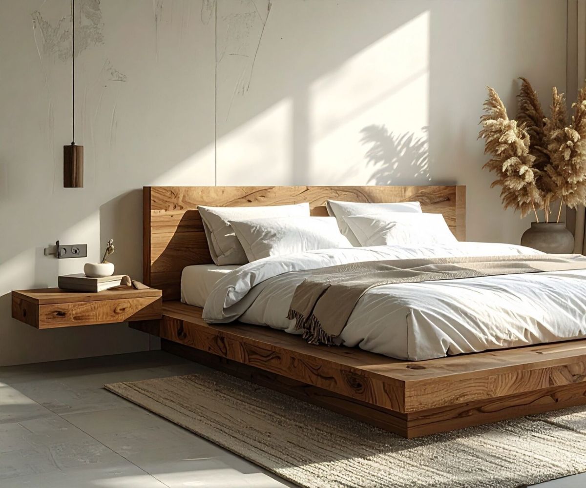 Maßgefertigte Holzbetten lassen sich ideal mit weiteren Möbeln kombinieren. Besonders im Zusammenspiel mit Einbauschränken entstehen ruhige und aufgeräumte Schlafzimmerlösungen. Auch individuelle Details wie integrierte Ablagen oder spezielle Kopfteile lassen sich problemlos umsetzen und auf Dein Raumkonzept abstimmen.